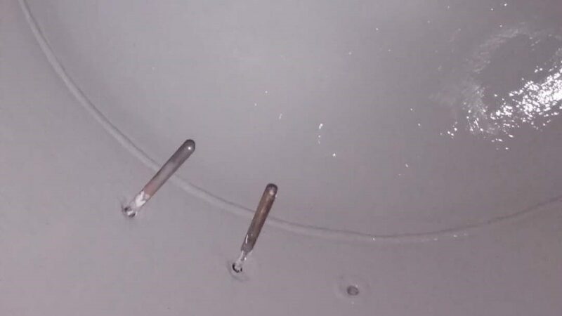 De binnenwand van de tank was ernstig gecorrodeerd en heeft enkele eerdere mislukte reparaties ondergaan, wat het normale gebruik van water beïnvloedt en langdurige anticorrosiebescherming vereist.
