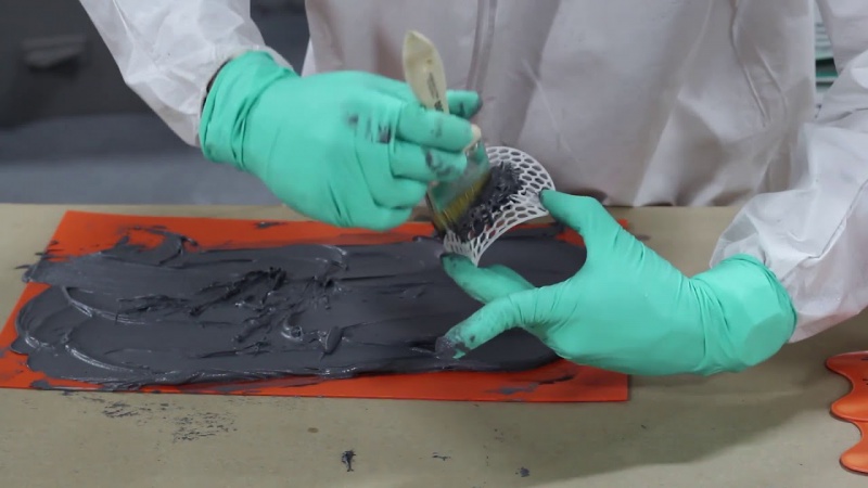 Allereerst diende het gat gedicht worden. Voor het dichten van dit soort lekkages in probleemgebieden heeft Belzona de 3D mesh in haar assortiment. Deze is speciaal ontwikkelt om lekkages effectief en eenvoudig te kunnen dichten. Gezien de live lekkage was het voorbehandelen van de ondergrond niet mogelijk.