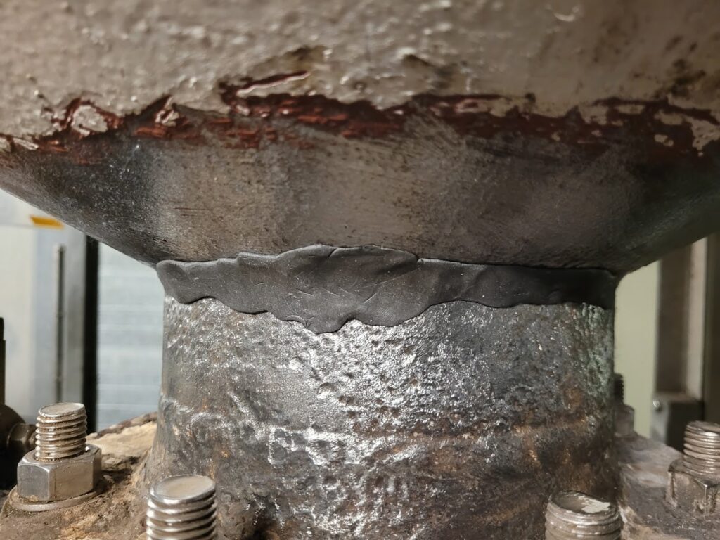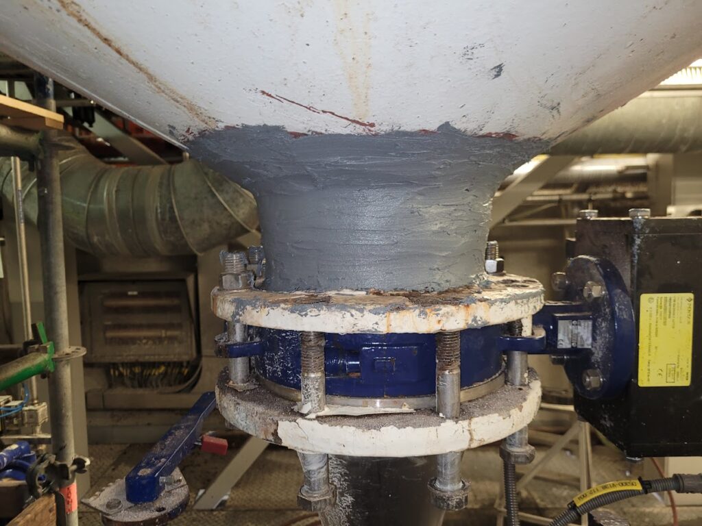 De slijtage heeft zich zover doorontwikkeld dat er op verschillende plekken gaten zijn ontstaan aan de tank. Deze gaten worden in eerste instantie verholpen met een snel uithardende epoxy reparatiepaste. Dit product wordt de Belzona 9611 genoemd en heeft een werktijd van slechts 3 minuten.